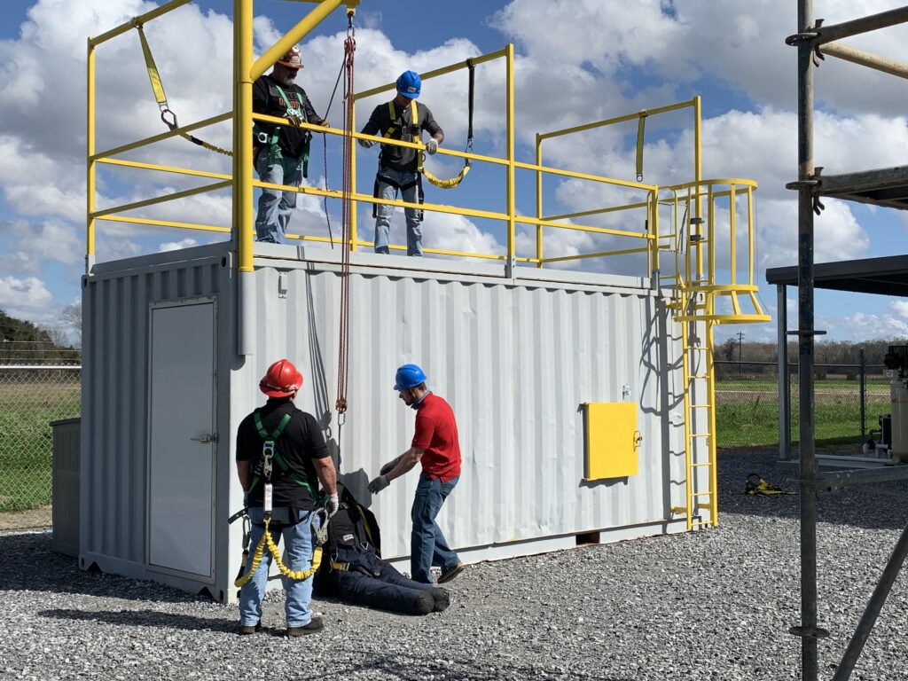 Our facilities offer over 20,000 square feet of dedicated training space, featuring practical pools, HUET simulators, TEMPSC, firefighting areas, confined space modules, working at height and fall protection props, pedestal cranes for rigging and crane operations, and specialized GWO props (available in Houma & Houston).
